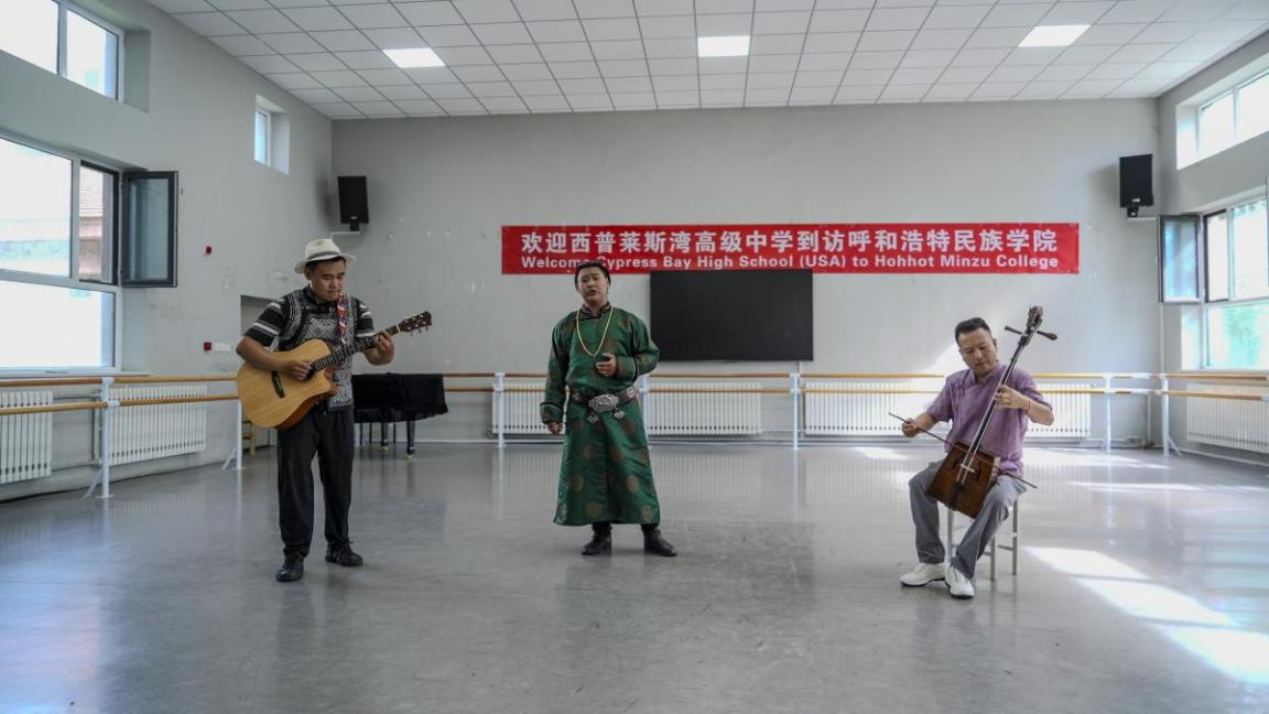 对外合作与交流中心主任齐瑞、音乐与舞蹈学院副院长韩木兰、美术与设计学院副院长芬笋得日、体育学院院长乌日根牧仁及相关部门、相关学院师生参加活动。