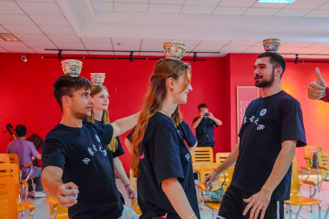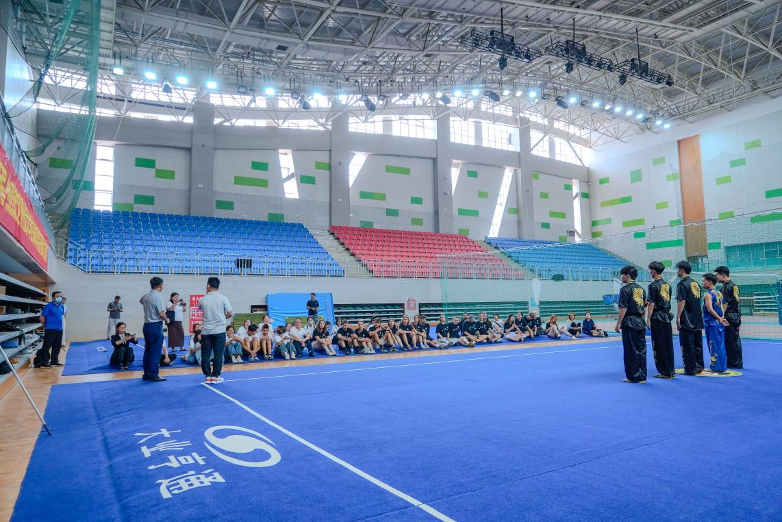 在拳脚间体悟文化精神。体育学院的传统武术体验则让访问团感受到中华文化的力量之美。院长乌日根牧仁与教师王志飞系统解读武术文化后,体育学院学生的一场刚柔并济的武术表演震撼登场。访问团师生被招式中的力道与韵律深深吸引,纷纷向武术专业学生请教剑术技法、腾空翻要领等经典动作。在一招一式的学习中,他们不仅感受到武术的力量美学,更体悟到自强不息、以和为贵的中华传统精神内核。