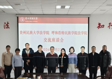 2026年1月22日-25日期间,法学院党总支书记乌兰其其格、法学院院长胡春香一行就法律硕士研究生招生培养、法律硕士点建设、涉外法治人才培养与学科建设等主题到贵州民族大学法学院、云南民族大学法学院、贵达律师事务所、昆明呈贡区碧潭社区等单位调研交流,法学院副院长白木仁、诉讼法学教研室主任王海锋参加调研。