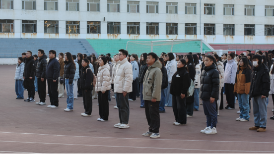 2026年3月9日早7时,法学院在学校南操场举行升国旗仪式暨主题国旗下演讲,学院党总支副书记姜鹏带领各班级学生、学生党员共300余人参与。伴随着雄壮的国歌,五星红旗徐徐升起,全体师生肃立敬礼,在庄严肃穆的氛围中厚植爱国情怀,仪式后开展以民族团结为核心的国旗下演讲。