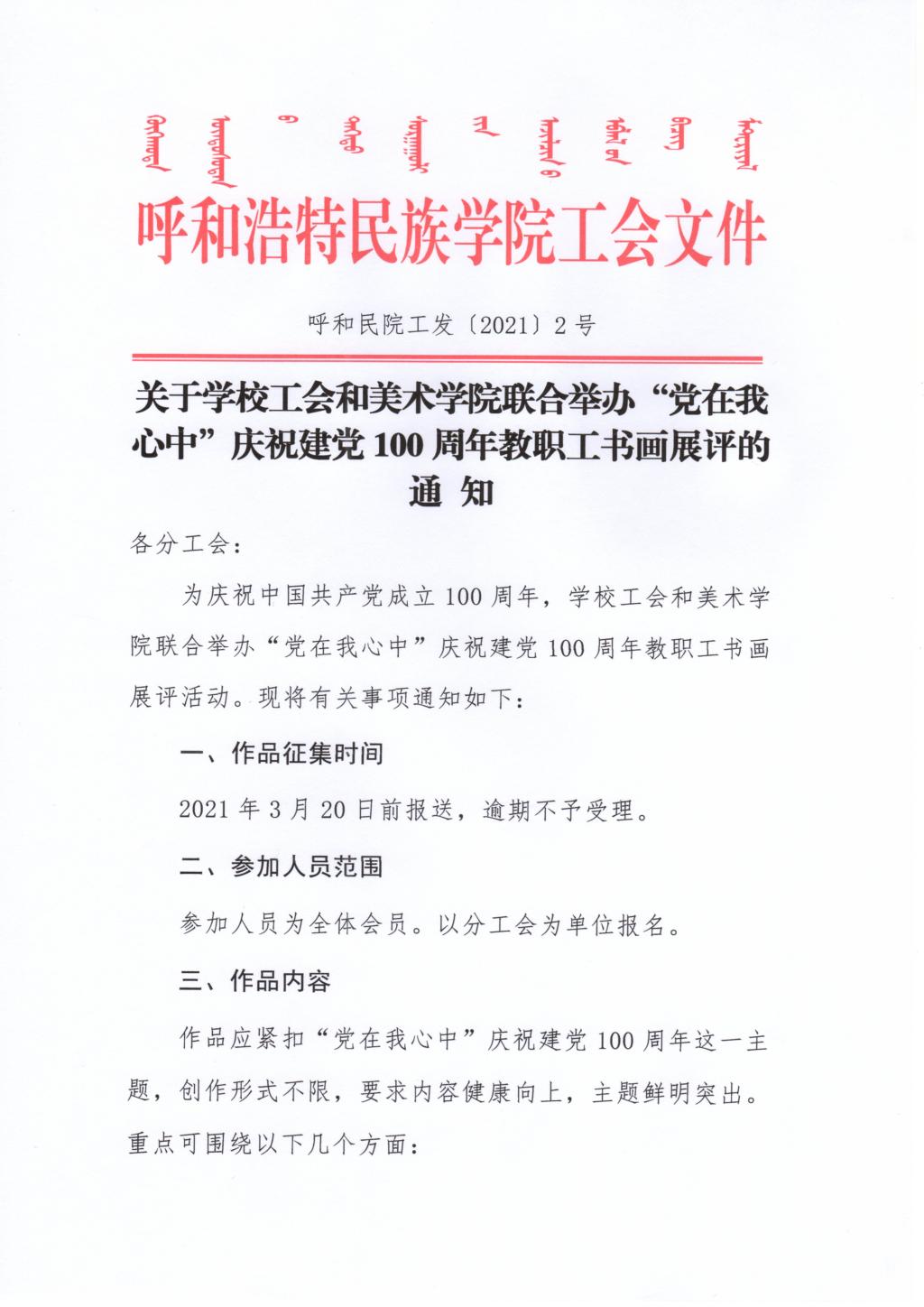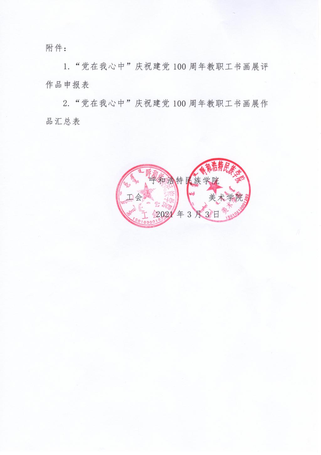 关于学校工会举办“党在我心中”庆祝建党100周年教职工书画展评的通知