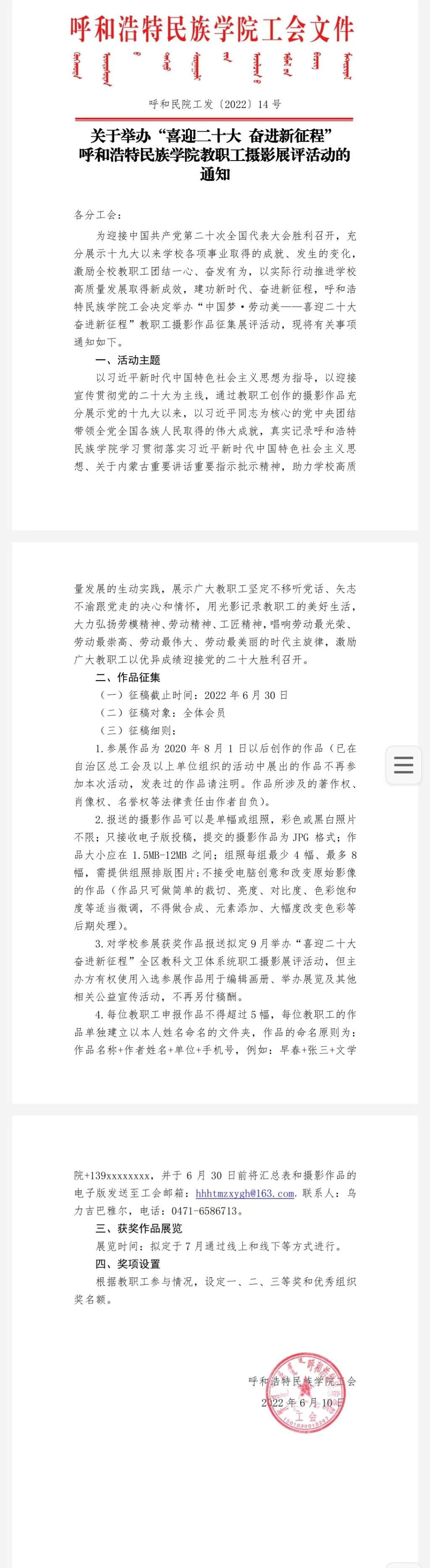 关于举办“喜迎二十大 奋进新征程”MILE米乐集团教职工摄影展评活动的通知