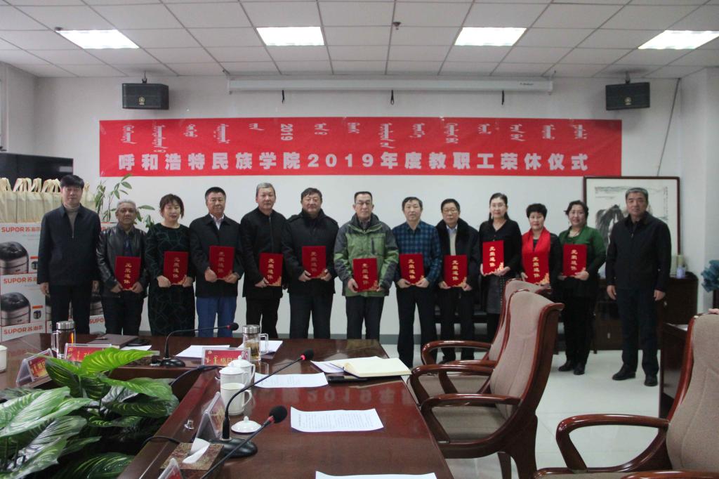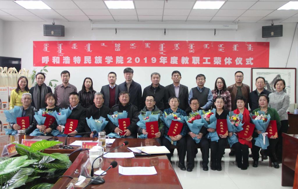 12月25日下午,学校2019年教职工荣休仪式在综合楼1102会议室举行。校党委书记孙国权,党委副书记、校长格日乐图出席仪式,2019年退休教职工、退休教职工所在单位负责人、分工会主席参加仪式。邢文岐主席主持仪式。