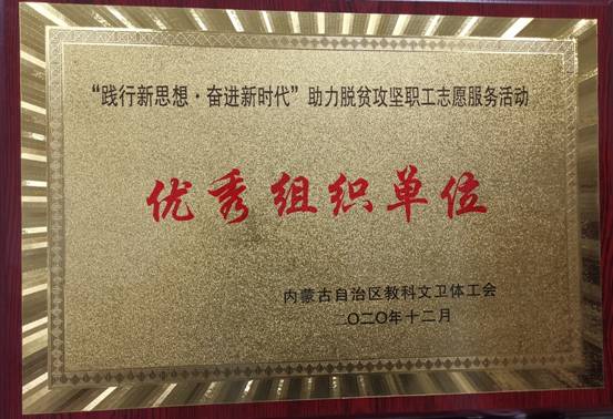 近日,自治区总工会发出通知,授予米乐官网为2020年自治区“践行新思想·奋进新时代”助力脱贫攻坚职工志愿服务活动优秀组织单位。
