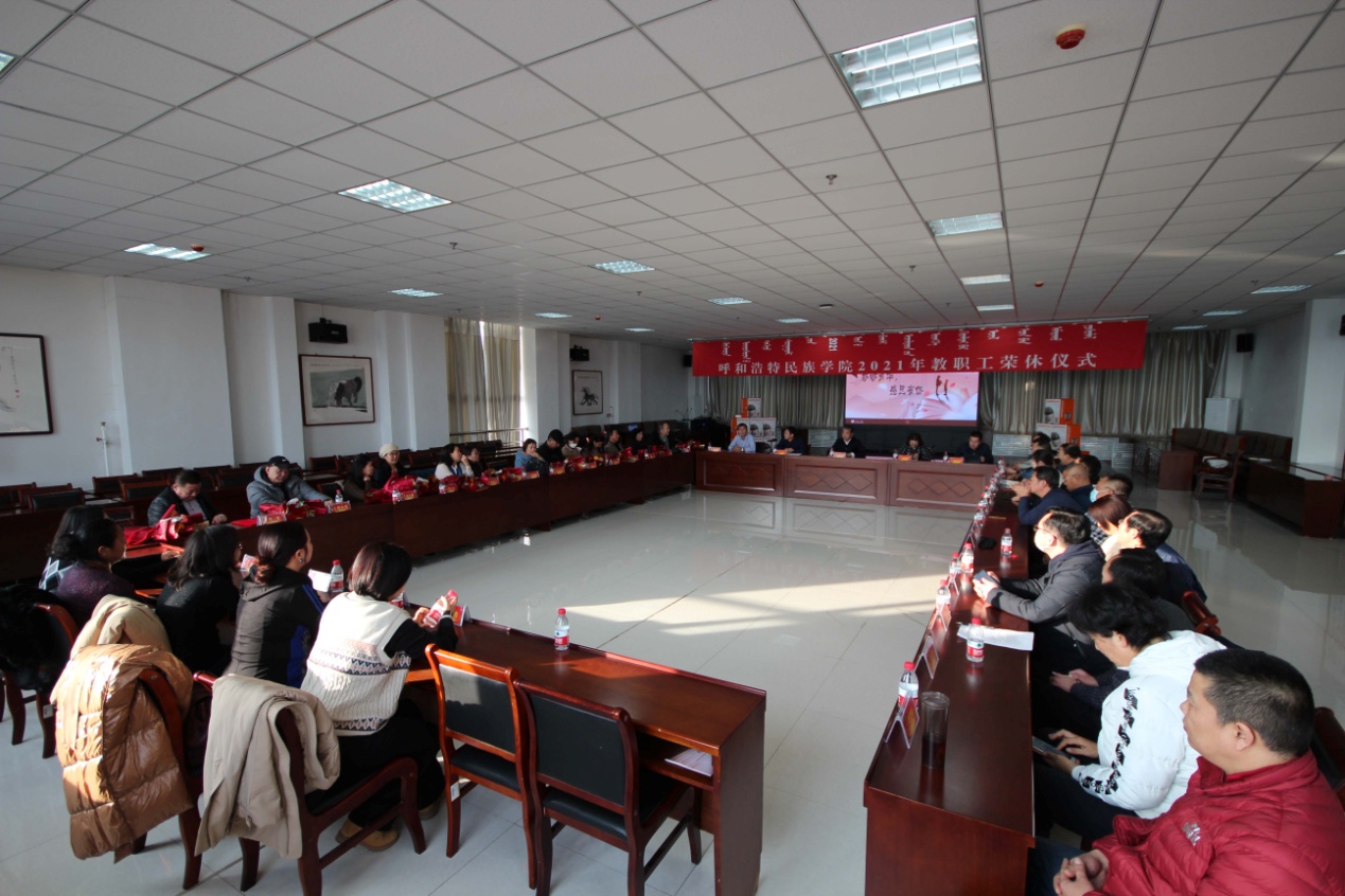 12月10日下午,学校2021年教职工荣休仪式在综合楼12楼会议室举行。校党委副书记、校长格日乐图,党委副书记胡春梅,党委委员、副校长高喜天出席荣休仪式。党政办公室、工会、离退休人员工作处等相关部门负责人,荣休教职工所在单位负责人、分工会主席、荣休教职工等50余人参加荣休仪式。荣休仪式由党委委员、副校长高喜天主持。