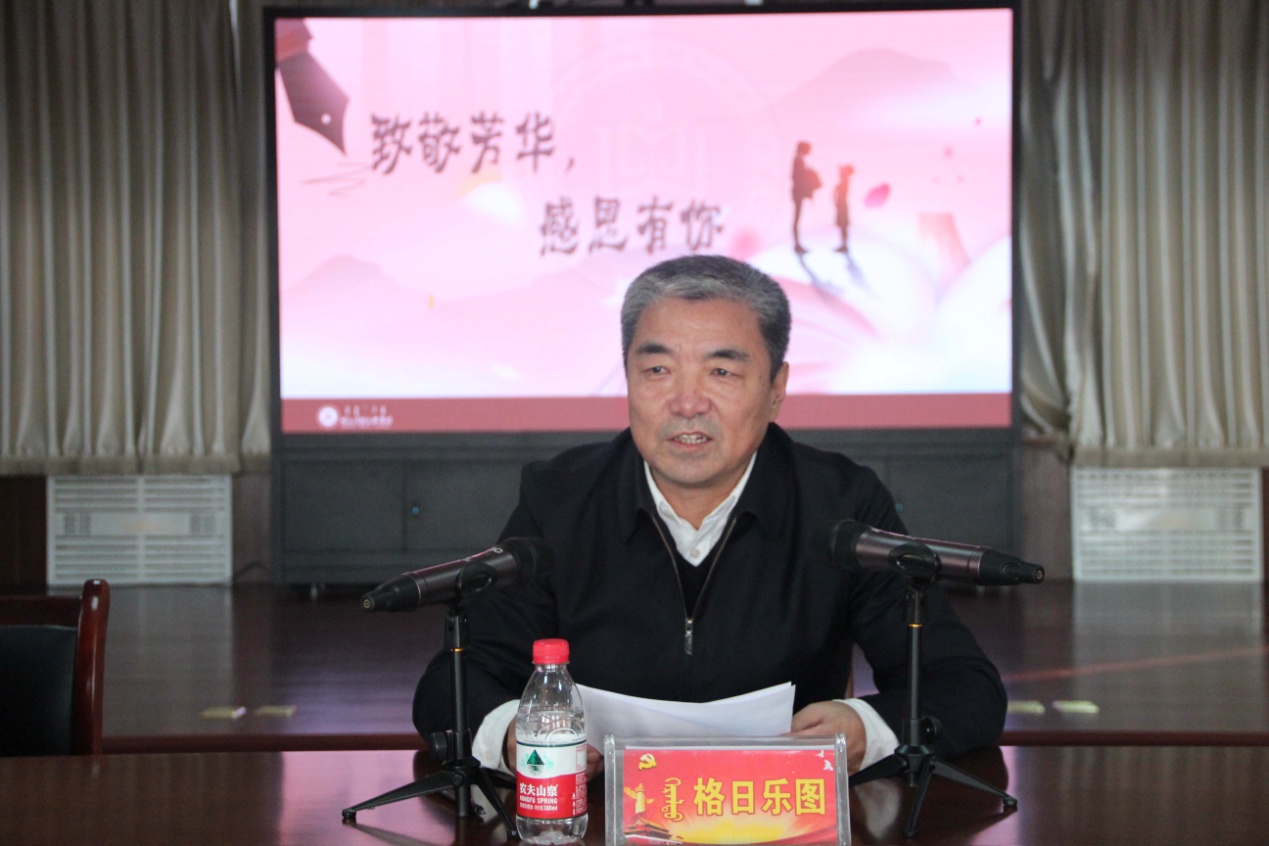 格日乐图校长代表学校党委向荣休教职工表示感谢,感谢他们把最美好的时光奉献了民院,将青春和智慧留在了校园,把立德树人、铸魂育人的使命担当写在了民院68年的发展史上。