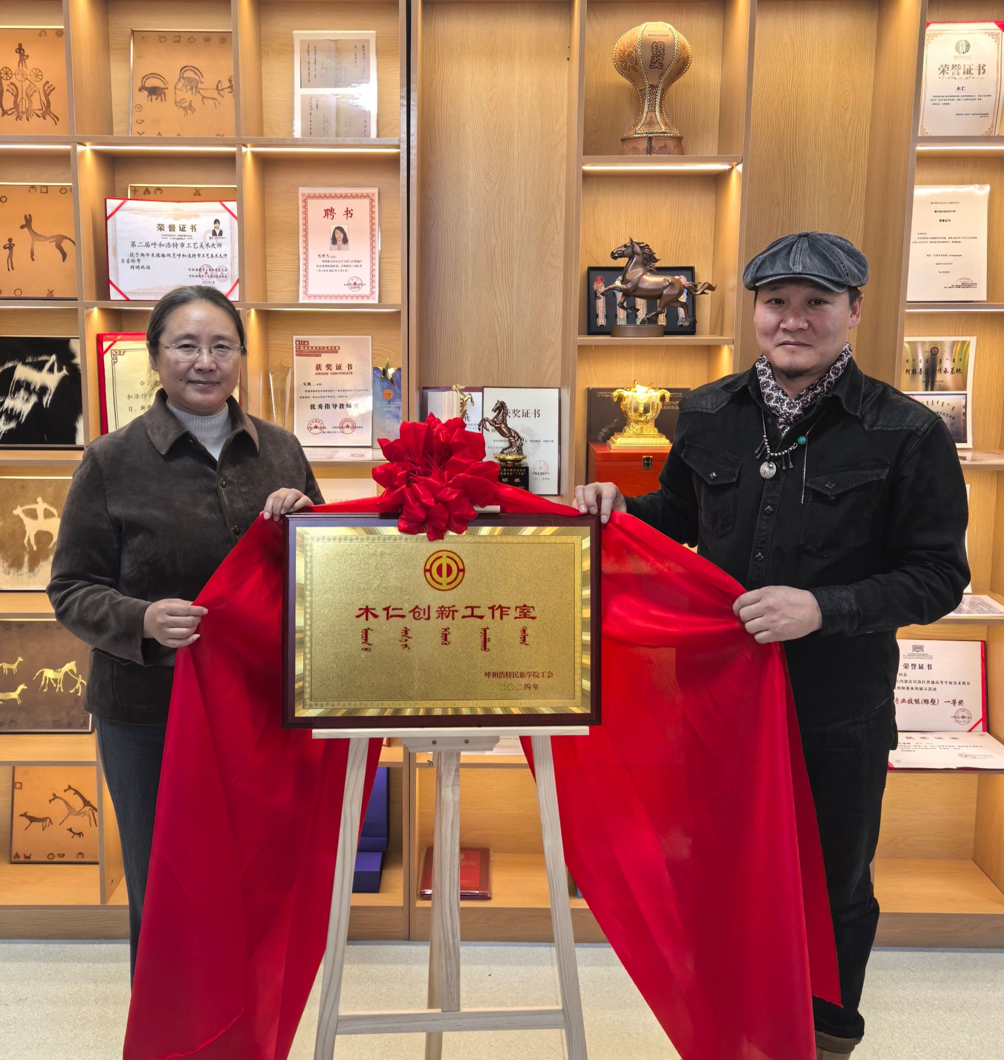 2024年12月9日下午, 米乐官网举行创新工作室揭牌仪式。校党委委员、纪委书记王冬梅,工会主席杨福梅,美术与设计学院班子成员,创新工作室成员参加了揭牌仪式。