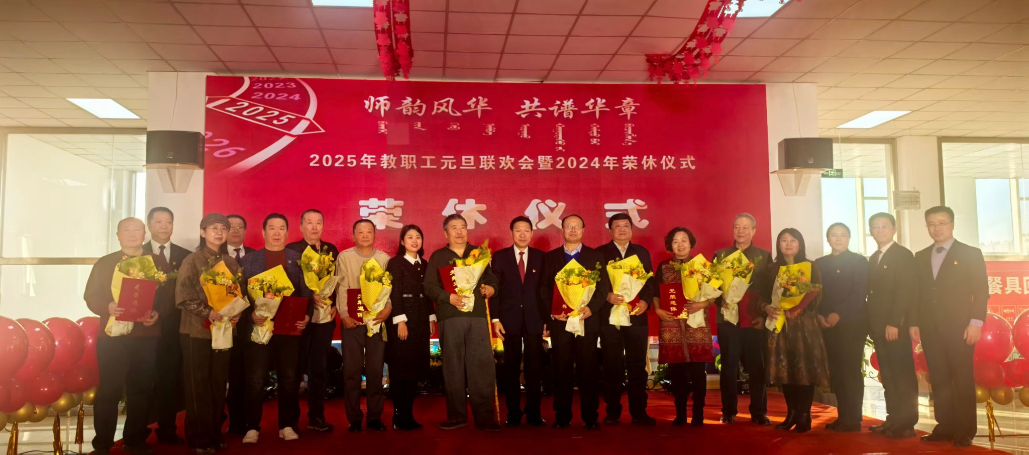 12月31日,学校召开新年联谊会暨退休教职工荣休仪式。校党委书记刘九万,党委副书记格根哈斯,党委委员、纪委书记、监察专员王冬梅,党委委员、副校长高喜天、刘瑞鸿、额尔敦布和、双虎等全体校领导出席活动。全校各部门单位教职工代表参加活动。