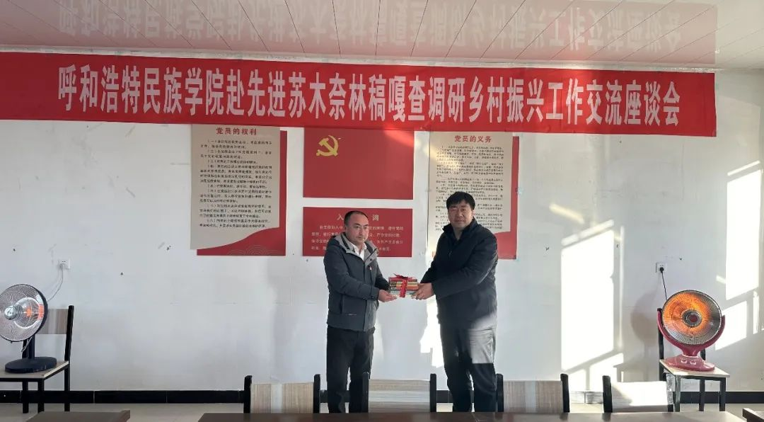 在座谈会上,米乐官网教育学院党总支副书记、驻奈林稿嘎查第一书记胡宝泉就2024年驻村帮扶工作和取得的成果作了汇报。旗领导与苏木参会人员对学校长期以来的关心支持帮助表示感谢,并介绍了奈林稿嘎查的基本现状、存在困难以及未来发展规划。校领导对胡宝泉在驻村期间取得的工作成绩表示充分肯定,对旗、苏木、嘎查给予学校驻村干部的关心和支持表示感谢,并指出,长期以来学校党委高度重视乡村振兴工作,全面落实党中央、国务院关于乡村振兴工作的决策部署和自治区党委、政府工作安排,积极做好各项帮扶工作。驻村干部舍小家为大家,用真抓实干和责任担当努力答好驻村帮扶答卷。学校将继续按照新形势新要求,一如既往支持和助力库伦发展,在赋能乡村振兴工作中持续发力、持续作为,贡献民院力量。座谈会后,米乐官网向奈林稿嘎查捐赠书籍。
