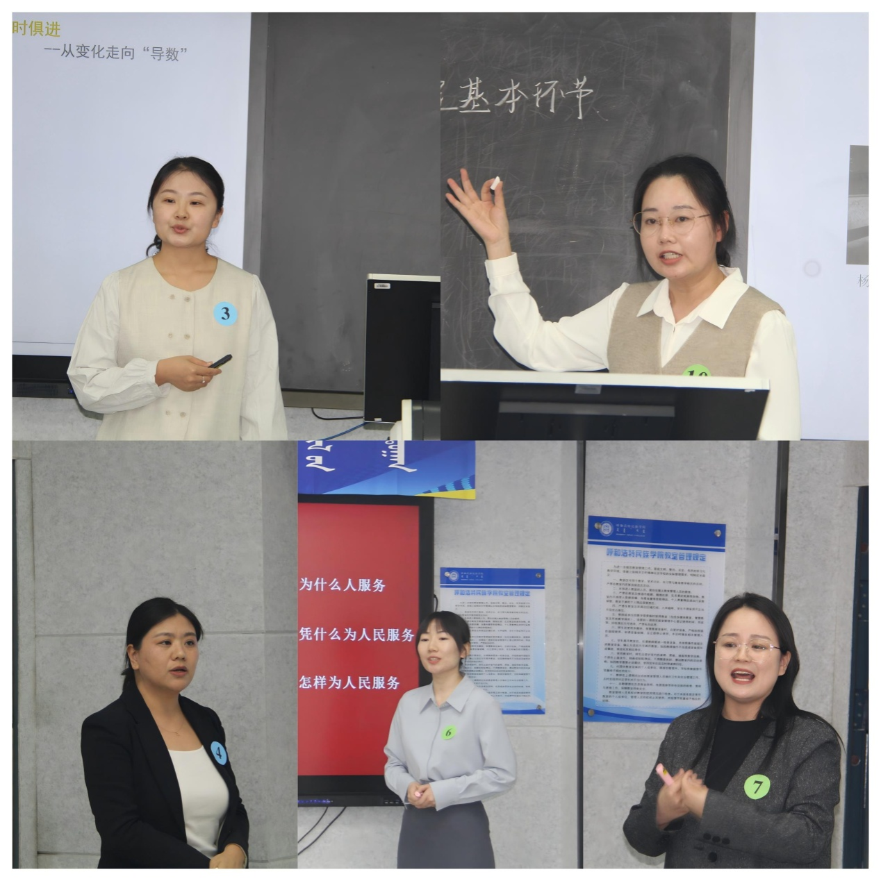 经过学院选拔推荐,共有来自13个学院的31名教师参加决赛。决赛分四个组别进行,每组评委由5位校外专家组成。赛事设置了教学设计、课堂教学展示、教学反思等三个环节。经过激烈角逐,最终评出文科、思政专项甲组一等奖各一名(王佳、萨仁通拉嘎);二等奖三名(韩斯琴、苏亚拉、韩红梅);三等奖三名(乌日古嘎、代阳、锡林高娃)。理、工科甲组一等奖一名(包呈敏);二等奖两名(澈力木格、高晶英);三等奖三名(丁冉冉、赵慧、敖民)。文科、思政专项乙组一等奖三名(孙笑然、李辉、李志华);二等奖四名(刘娜、李敏、王冬青、杨耀天);三等奖五名(杭盖、威丽斯、张丽丽、闫博、莫乐孟)。理、工科乙组一等奖一名(高木其乐);二等奖两名(姜双双、温颖);三等奖两名(田若楠、郭一超)。