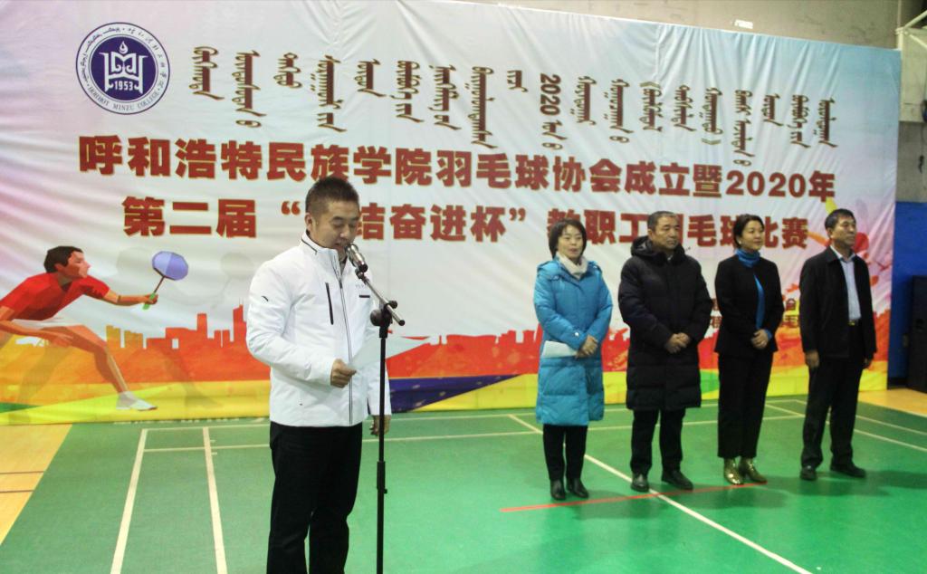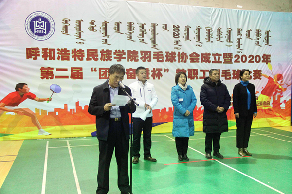 为铸牢中华民族共同体意识,进一步丰富教职工的文化生活,切实提高教职工的身体素质,推动“中华民族一家亲,同心共筑中国梦”的理念,由学校工会主办,羽毛球协会承办的MILE米乐集团羽毛球协会成立暨2020年第二届“团结奋进杯”教职工羽毛球比赛开幕式11月25日下午在北校区体育馆一楼举行。学校党委副书记、校长格日乐图,党委副书记胡春梅,副校长纳丽娜出席开幕式。学校各职能部门和分工会主席、全体运动员、裁判员和部分学生代表150余人参加了开幕式。开幕式由学校党委委员、党政办主任朝格吉乐图主持。