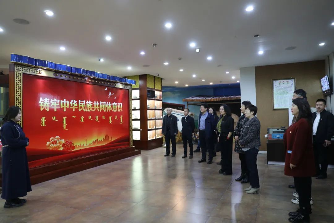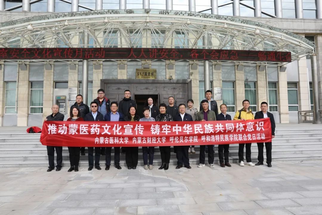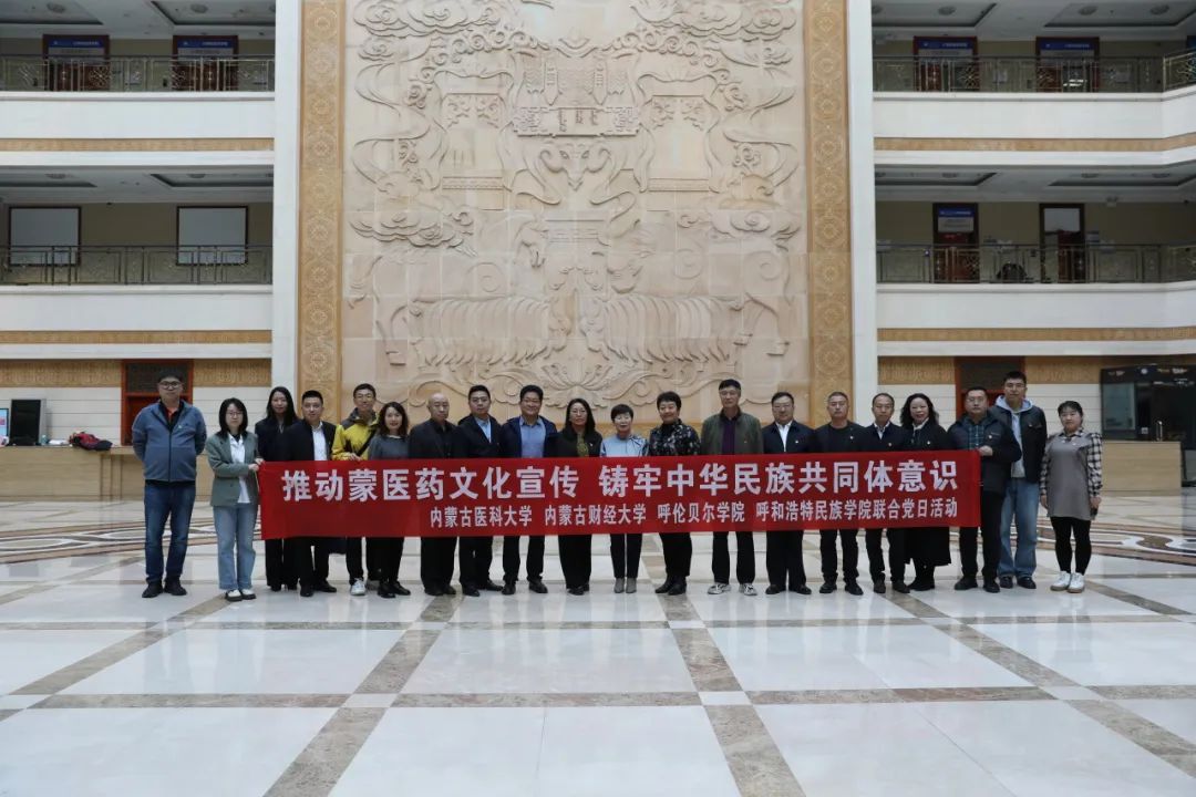 座谈交流会后,四所高校共同开展了“推动蒙医药文化宣传铸牢中华民族共同体意识”联合党日活动,参观了内蒙古医科大学蒙医药博物馆。