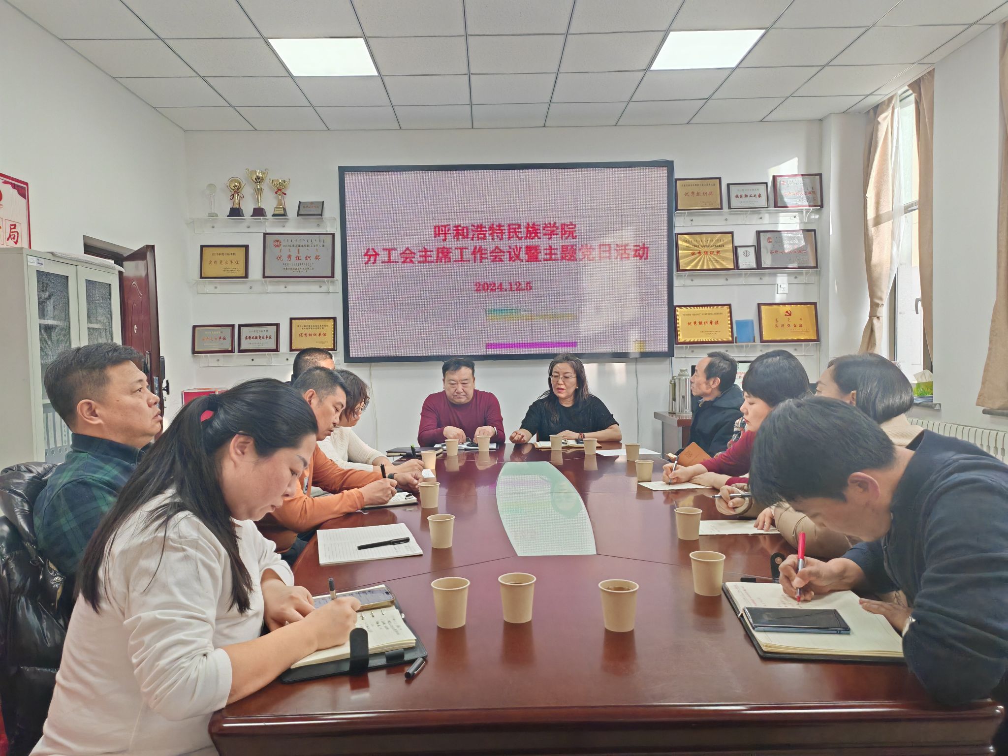 12月5日下午,校工会在职工之家三楼会议室召开分工会主席工作会议暨主题党日活动。工会主席、党支部书记杨福梅主持会议并讲话,分工会主席和全体工会工作人员参加了会议。