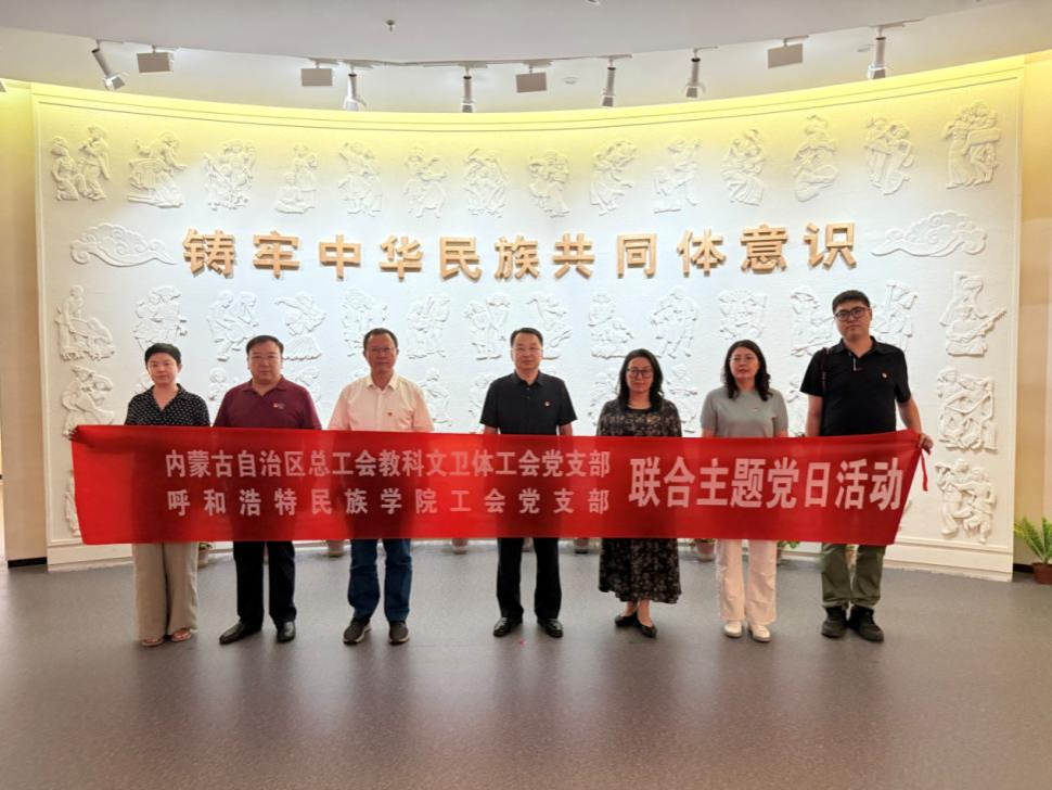 随后,自治区总工会教科文卫体工会党支部与学校工会党支部在铸牢中华民族共同体意识教育馆开展联合党日活动。