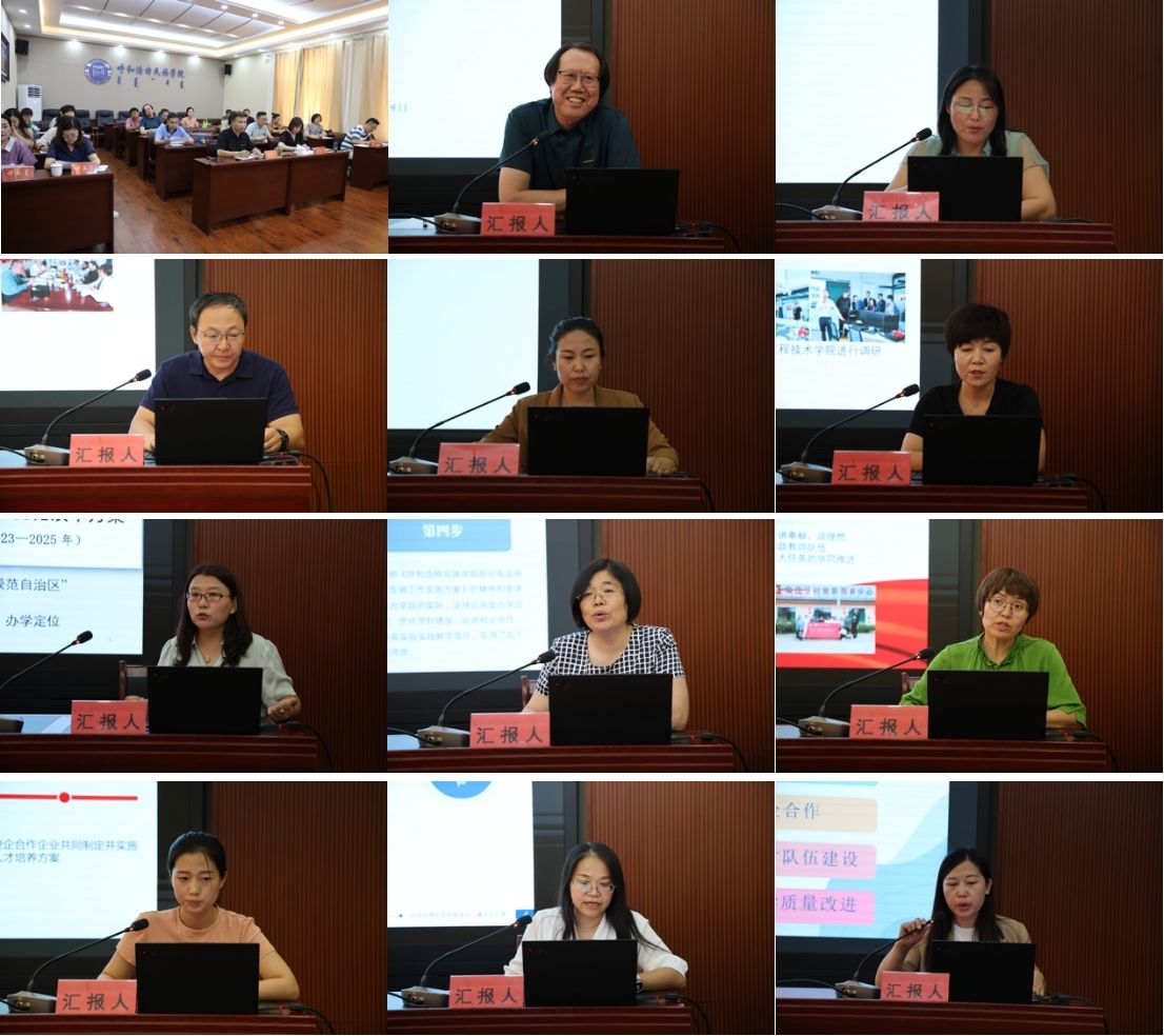 额尔敦布和强调,专业转型是区域经济产业发展的破求需要,是专业结构布局调整的需求,是学校高质量发展的紧迫需要。他一一点评12个转型发展专业的建设成效以及存在的主要问题,同时对下一阶段的工作提出了四点建议:一是要以政策为导向,对标需求,提炼专业转型的抓手和渠道,加快推进转型发展工作任务;二是要以课程为基础,对标价值,把脉课程转型的分布与改革,加快课程体系架构的优化;三是要以师资为保障,对标时代,推进教师理念的转型和升级,加快提高教师对专业建设的使命感;四是要以要素为牵引,对标发展,打造专业建设的点线面体框架,加快专业发展的跨界融合。