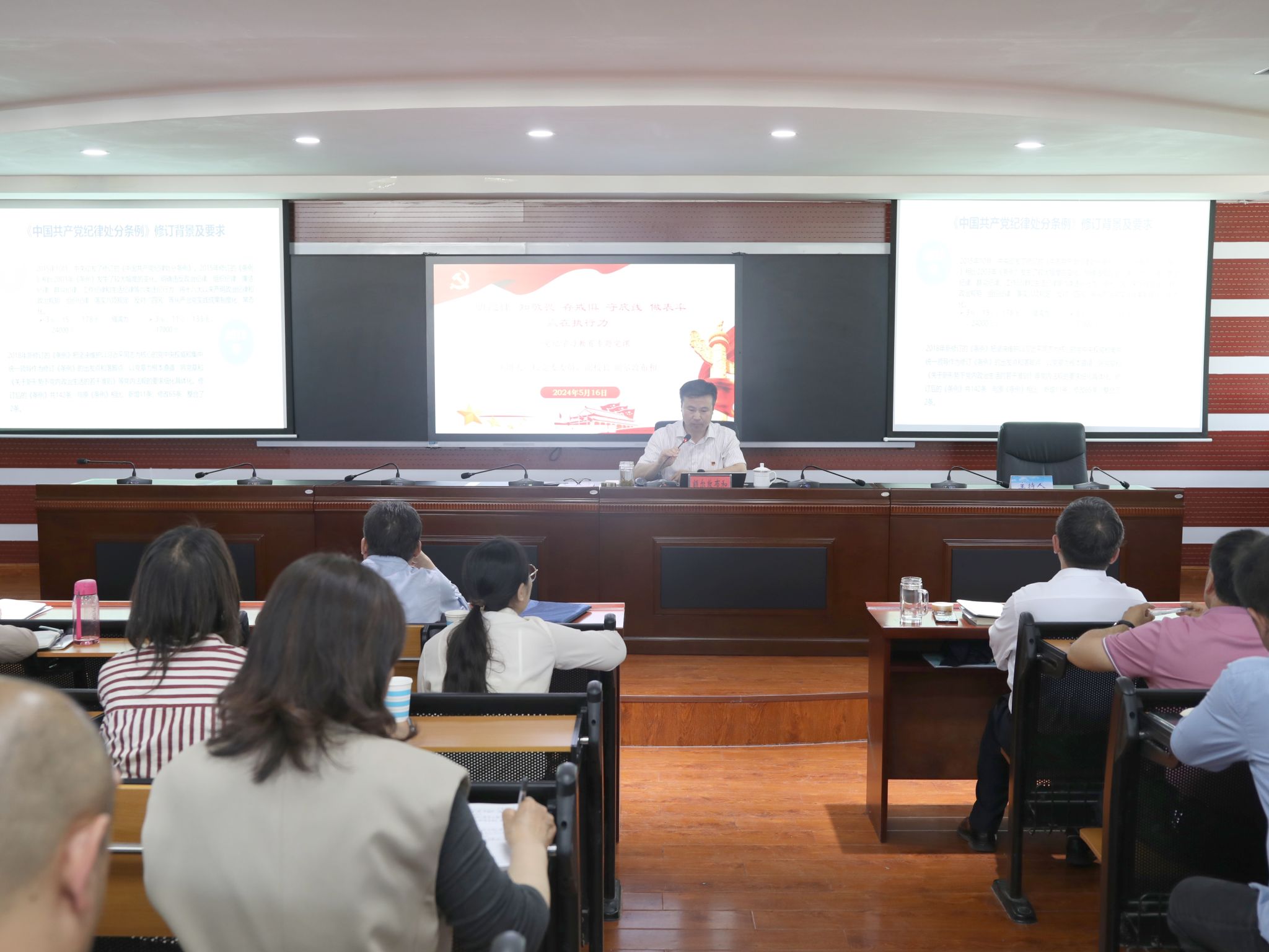 为深入学习贯彻习近平总书记关于党纪学习教育的重要讲话和指示精神,5月16日下午,校党委委员、副校长额尔敦布和以“明纪律 知敬畏 存戒惧 守底线 做表率 赢在执行力”为题讲授专题党课。