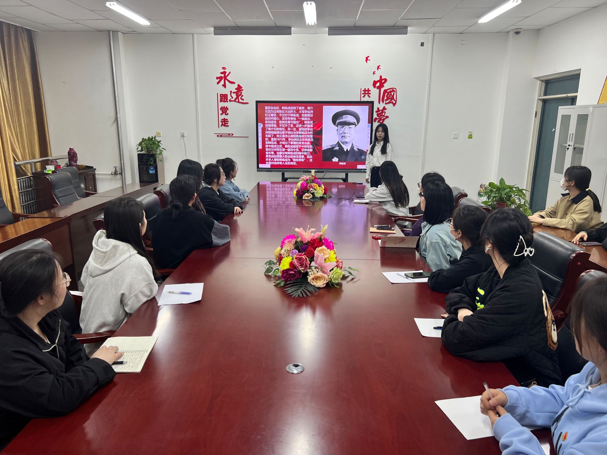 活动中支部党员朱佳敏以《莱芜战役背后的“隐形将军”》为题,讲述韩练成将军在山东莱芜歼灭战中向我军方传递重要军事情报,为莱芜战役的胜利,立下不可磨灭的功勋故事。