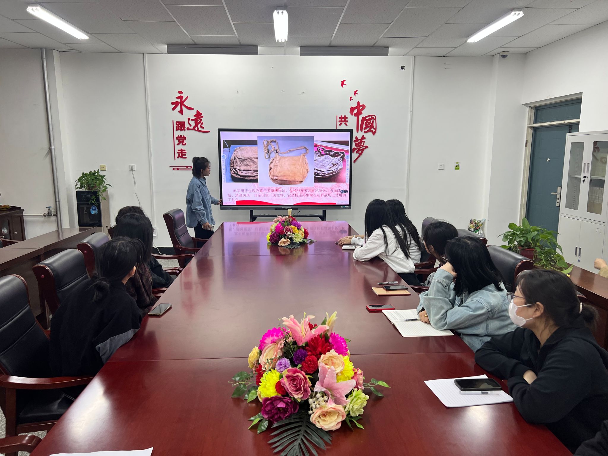 支部党员武宇荣以《战斗英雄的小挎包》为题,通过杨连弟生平与事迹、小挎包背后的故事、杨连弟精神内涵与价值体现、当代青年如何学习践行杨连弟精神等四个部分与大家进行深入探讨。