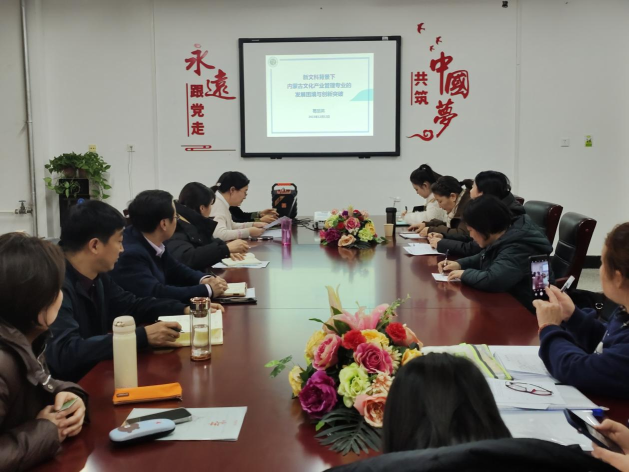 为进一步加强米乐官网文化产业管理专业的高质量发展,12月14日,公共管理学院特别邀请了内蒙古艺术学院北疆艺术研究院常务副院长葛丽英教授作为主讲嘉宾,在尚智楼112会议室举办了《新文科背景下内蒙古文化产业管理专业的发展困境与突破》专题的前沿讲座。讲座由公共管理学院副院长额尔敦格日乐主持,文化产业管理教研室全体老师和部分没课任课老师参加。