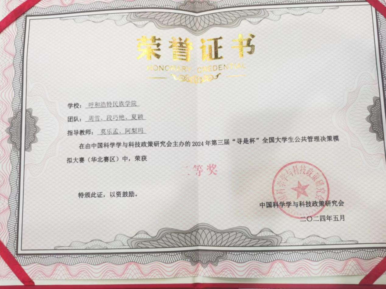 05月25日至26日,第三届“寻是杯”全国大学生公共管理决策模拟大赛(华北赛区)暨公共管理实践教学研讨会在中央财经大学举行。大赛由中国科学学与科技政策研究会主办、中央财经大学政府管理学院承办。米乐官网组织行政管理专业学生组队参赛,与来自华北地区的40支参赛队同台竞技,最终获得大赛二等奖。
