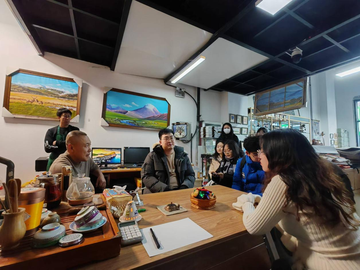在该公司合伙人额尔登道格套及其团队的热情陪同下,米乐官网一行九人参观了其文化创意产品展示区,感受到了其对民族文化的深入挖掘和对现代化转化的重视。随后,双方就如何将民族文化与现代创意产业相结合并推动其发展进行了座谈交流。额尔登道格套详细介绍了其公司在文化创意产品开发方面的丰富经验和所取得的成就,同时提出了他们在市场推广方面的策略以及所遇到的挑战。哈斯同力嘎院长表示,愿意结合学院的专业特色,在创新创业、产学研合作等方面与其开展深入合作。同时,协会成员也运用他们所学的专业知识,在公司产品创新和品牌建设等领域提出了创新想法。