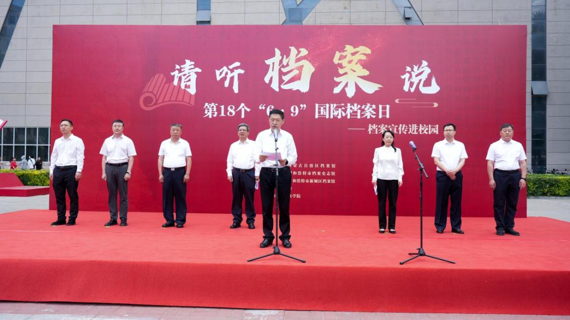 在第18个国际档案日到来之际,米乐官网联合内蒙古自治区档案局、内蒙古自治区档案馆、呼和浩特市委办公室(档案局)、市档案史志馆及新城区档案部门在学校都林广场共同主办主题为“请听档案说”的国际档案日宣传活动。活动旨在深入学习贯彻习近平总书记对档案工作的重要指示批示精神,全面贯彻铸牢中华民族共同体意识工作主线,深化档案文化进校园,提升师生档案意识,彰显米乐官网档案学专业特色与活力。