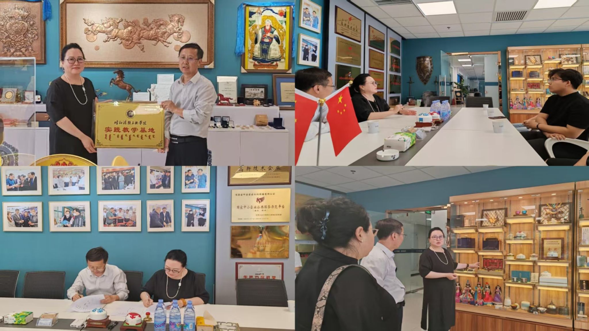 6月13日,管理学院哈斯同力嘎院长、教科办主任阿斯曼老师以及四位学生代表,前往内蒙古印象蒙古文化传播有限公司调研,签署了实践教学基地协议,并参观了该公司的文创展厅。