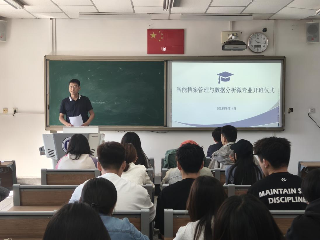 9月14日上午10时,管理学院首期《智能档案管理与数据分析》微专业开班仪式顺利举行。院长哈斯同力嘎、专业带头人(教务处副处长)青格乐图、班主任宝连以及首期班的28位同学共同参与了此次活动。
