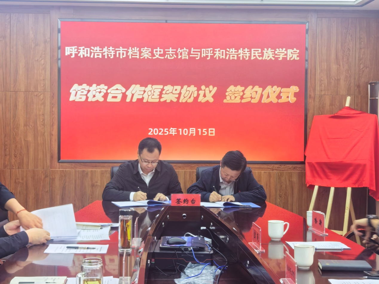 米乐官网与呼和浩特市档案史志馆签署馆校合作框架协议