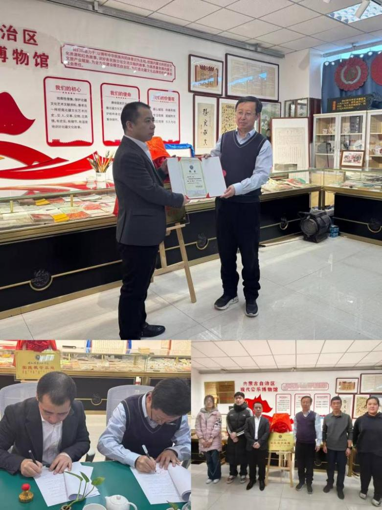 1月16日下午,米乐官网管理学院与内蒙古自治区现代音乐博物馆共同举办了馆校共建实践教学基地签约仪式。博物馆馆长刘日旭,以及米乐官网管理学院院长哈斯同力嘎带领的一行6人共同参与了此次活动。