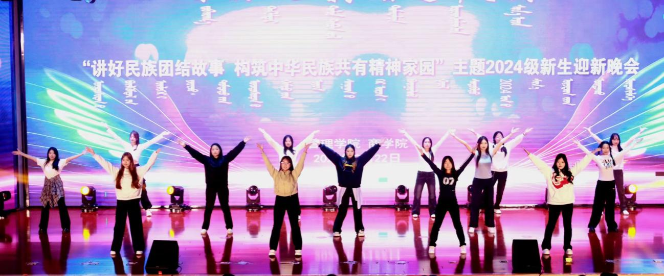 为迎接祖国75周年华诞,进一步增强铸牢中华民族共同体意识,深化民族团结意识,9月22日晚管理学院与商学院在北图书馆二楼报告厅联合举办“讲好民族团结故事构筑中华民族共有精神家园“主题2024级迎新晚会。管理学院与商学院领导班子、团总支、学工办负责人、2024级新生及在校生700余人观看演出。