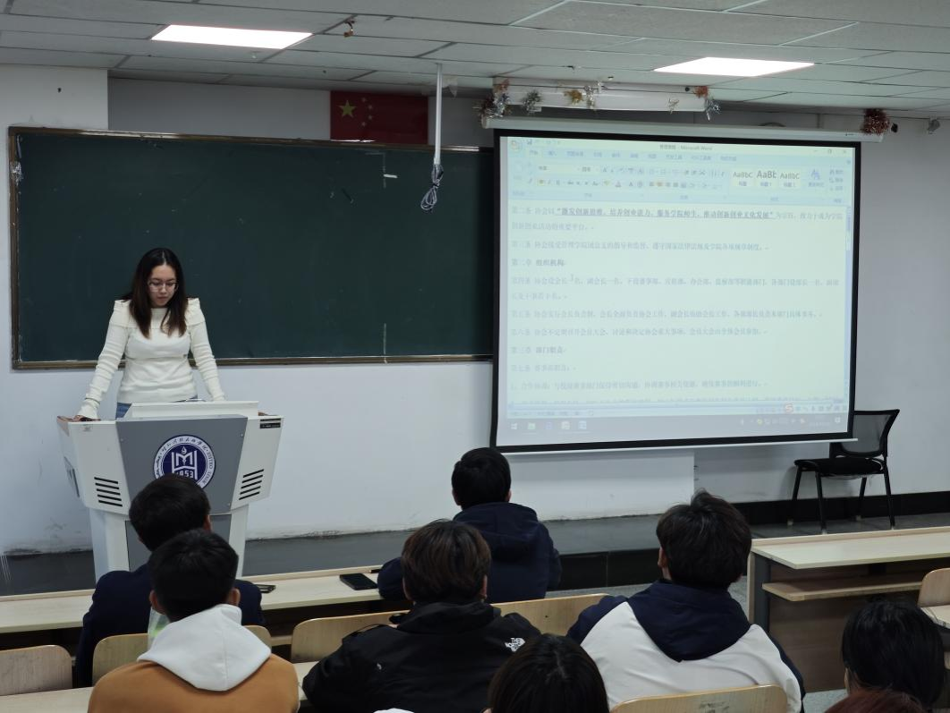 会上,创新创业协会会长白美淋首先明确了各部门的核心任务与工作重点,确保成员清晰了解各自职责。接着,会长深入讲解了管理章程,包括会员权利与义务、会议制度、决策流程等,以保障协会高效运作与规范管理。随后,各部门部长依次发言,阐述了各自部门的工作规划与目标,并介绍了即将开展的活动与项目。