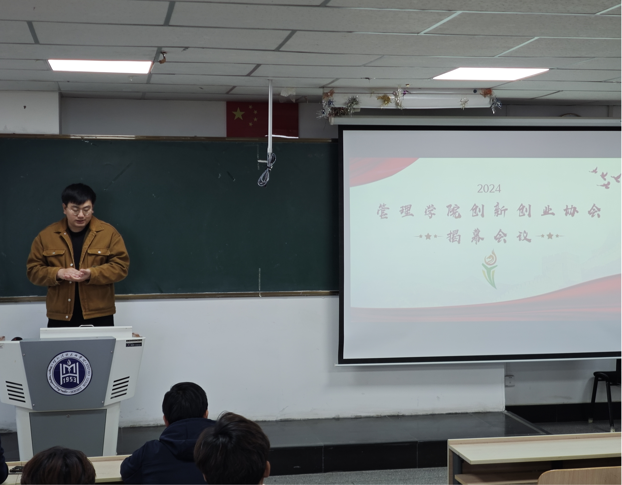 为培养和调动米乐官网师生创新创业意识,便于组织一年一度的大学生“互联网+”创新创业大赛,管理学院组织成立“管理学院创新创业协会”,并于10月10日下午在在尚志楼214教室举行了创新创业揭幕会议。管理学院院长哈斯同力嘎、团总支书记宝连老师、行政教研室玛西毕力格老师以及创新创业协会的全体成员出席了此次大会,会议由协会副会长刘鹏鹤主持