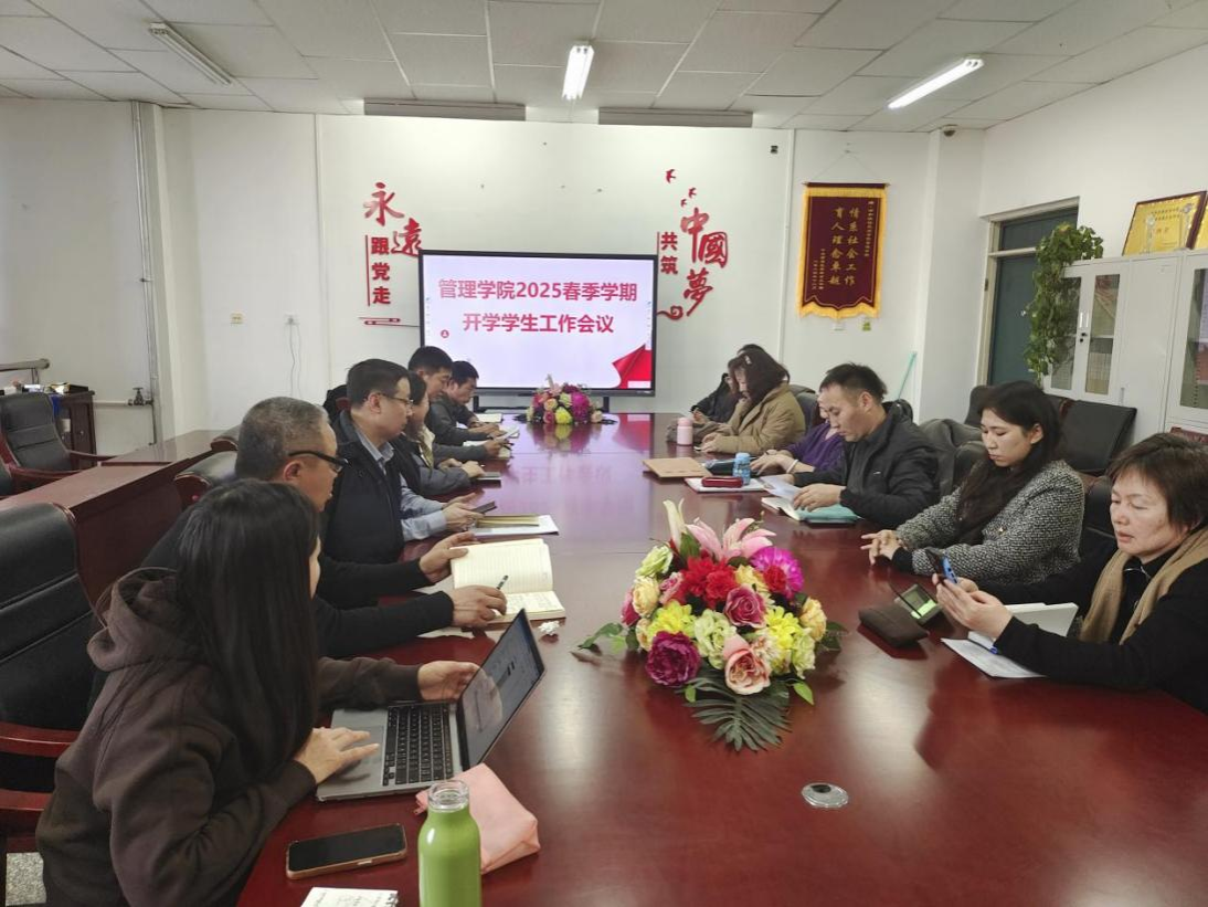 为统筹推进新学期学生工作,确保开学各项工作平稳有序开展,管理学院于2月25日下午在学院会议室召开2025年春季学期学生工作部署会。党总支书记格日乐、党总支副书记青格乐图及全体辅导员、班主任参会。