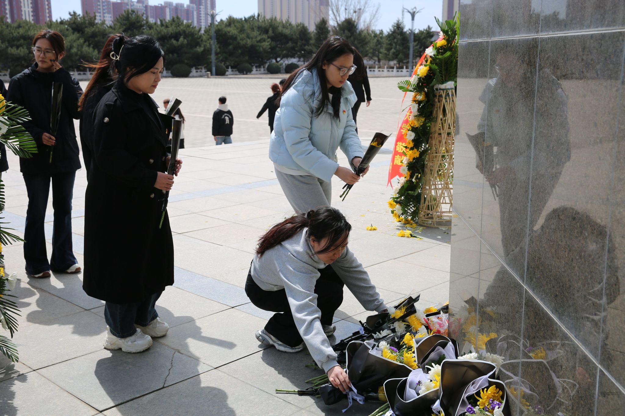 大学生们怀着崇敬的心情,整齐列队于革命烈士纪念碑前。纪念碑巍峨耸立,“人民英雄永垂不朽”几个大字庄严肃穆,寄托着对革命先烈的无尽追思。在主持人的引导下,全体学生向革命烈士默哀三分钟,表达对先烈们的沉痛悼念。随后,学生代表缓步走向纪念碑,敬献鲜花,鲜艳的菊花承载着对英烈的崇高敬意与深切缅怀。
