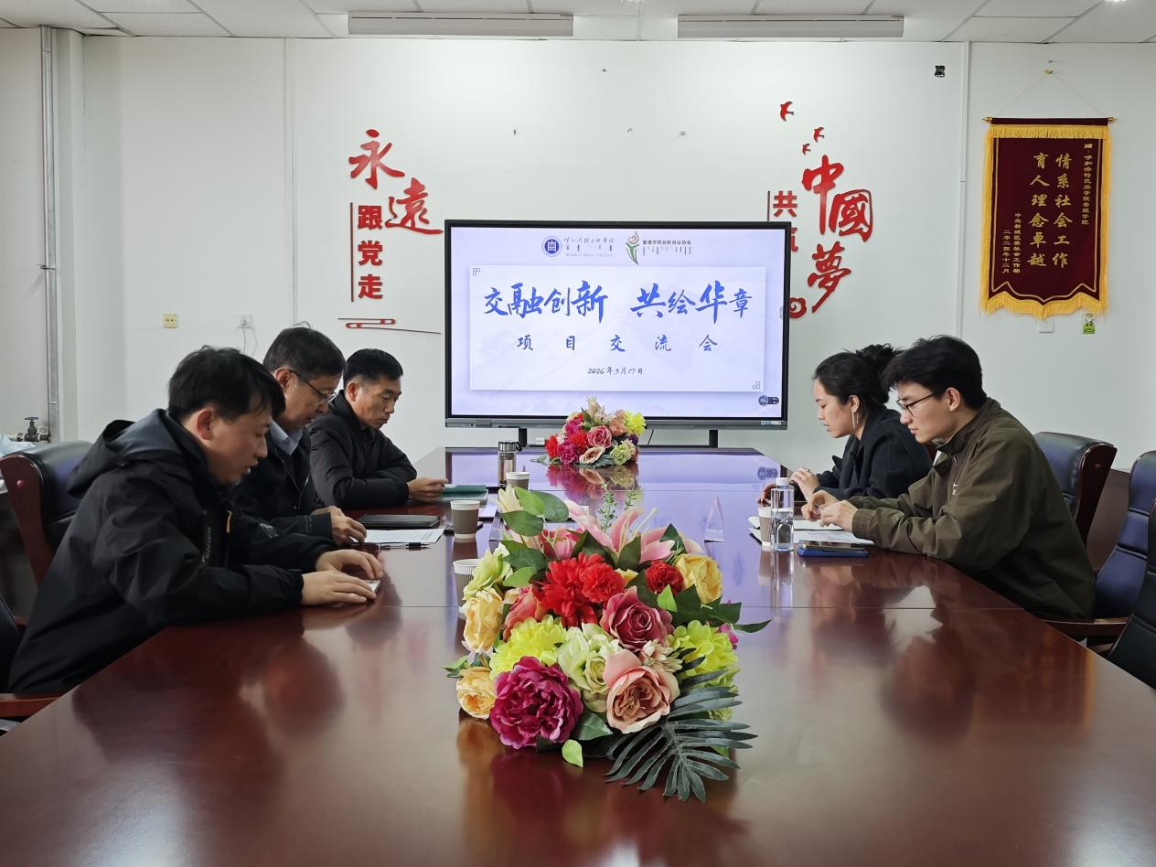 2026年3月17日下午,管理学院于会议室成功举办“交融创新·共筑华章”项目交流会。学院院长哈斯同力嘎、团总支书记宝连、专职辅导员庄晓岩、赛事负责学生白美淋及各参赛项目核心成员共同参会。会议特邀内蒙古赤峰市泽被后世文化有限公司总经理、创新创业导师刘书泽先生作为主讲嘉宾。
