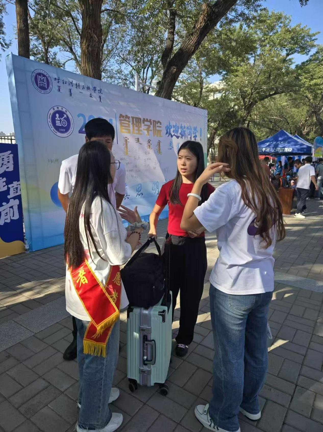 晨光微熹,整个校园洋溢着喜庆欢乐的气氛。学院迎新接待处搭好帐篷,挂起横幅,清点物资,各项工作准备就绪,迎新工作全面开展。