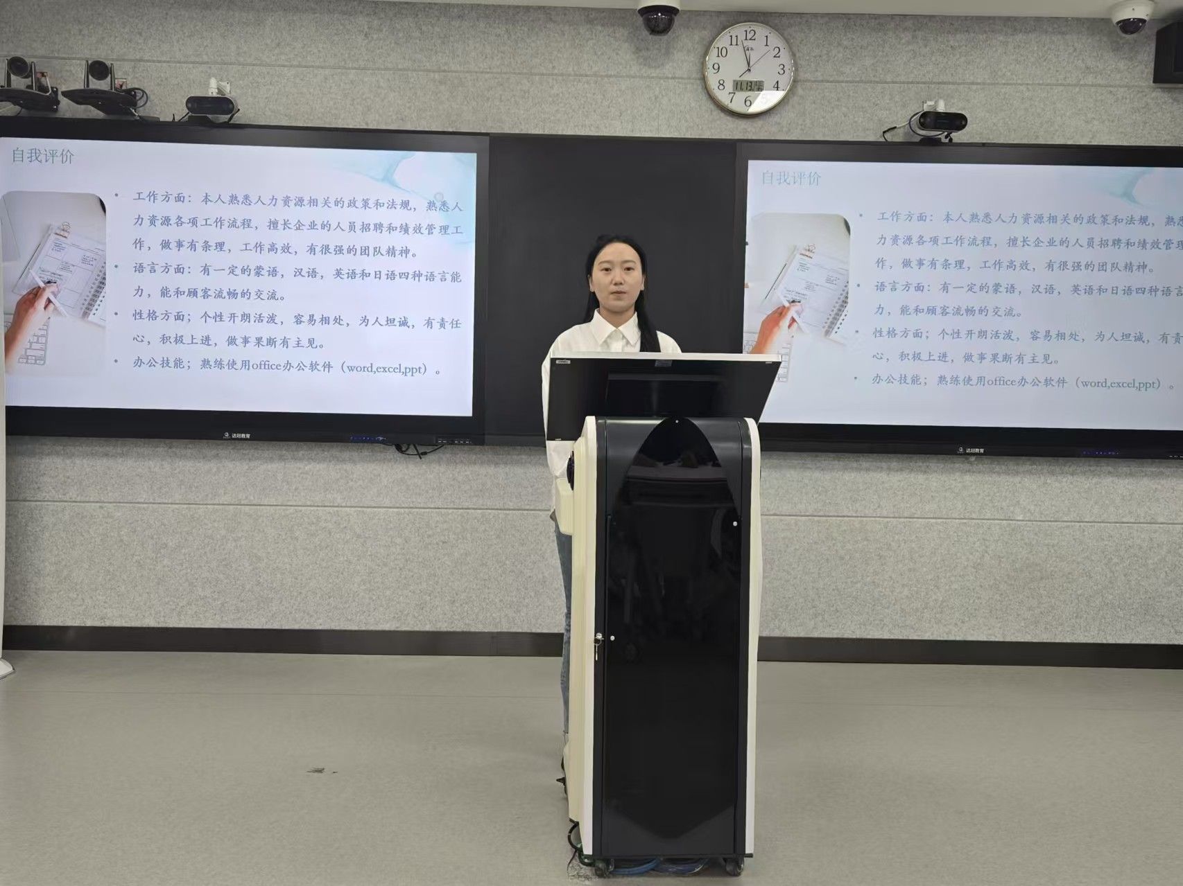 经由初赛环节对简历的严格筛选,最终有7位选手成功晋级决赛。决赛环节划评委们针对选手个人展示和简历设计进行提问,并根据其现场表现,从仪容仪表、简历制作和表达能力等方面打分,最终评选出本次大赛的获奖者。