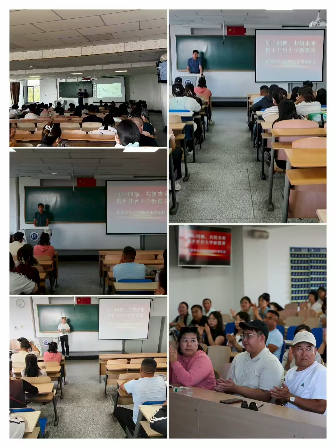 8月30日下午,学院举行2025级新生家长见面会。学院领导、专业教师代表与家长齐聚,院长哈斯同力嘎,党总支副书记青格乐图等介绍专业前景、团学活动、助学政策及创新创业等内容,班主任寄语新生,通过活动加强家校联系,助力共育学生成长。