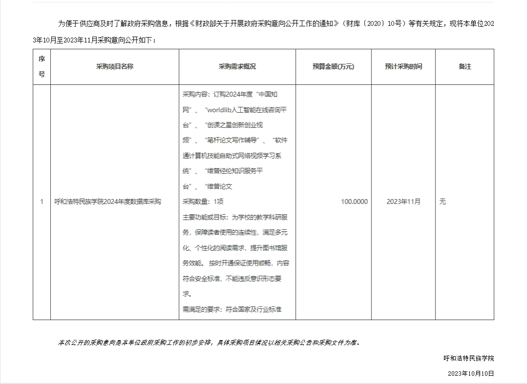 MILE米乐集团2023年10月政府采购意向