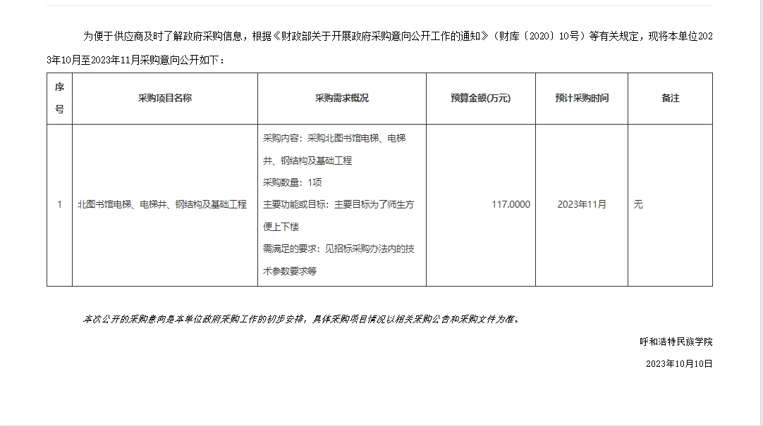 MILE米乐集团2023年11月政府采购意向
