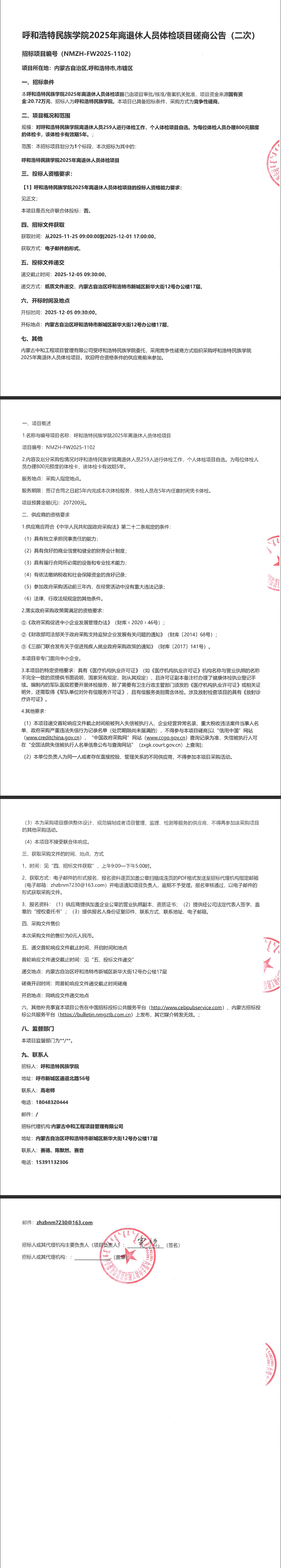 MILE米乐集团2025年离退休人员体检项目磋商公告(二次)
