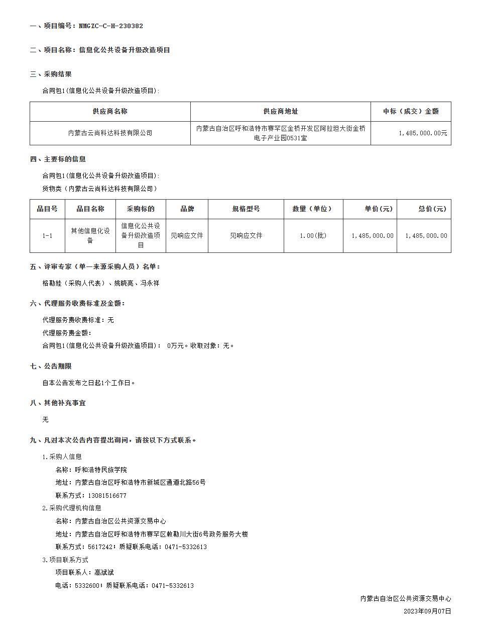 中标(成交)公告
