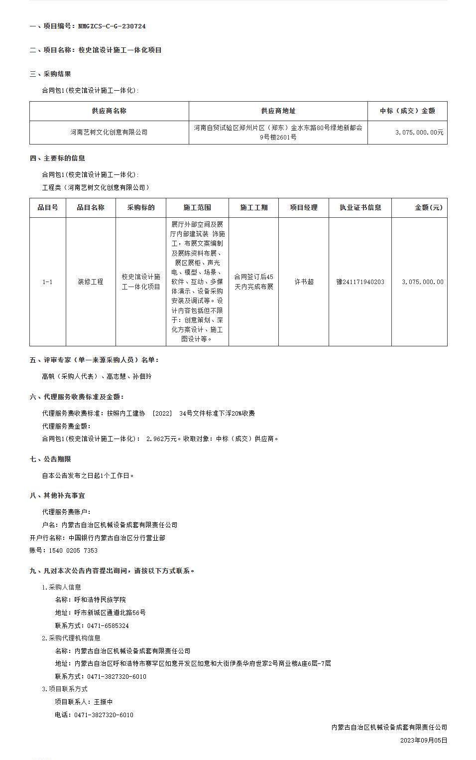 MILE米乐集团校史馆设计施工一体化项目结果公告