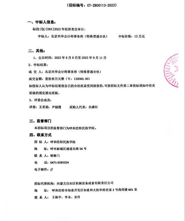 MILE米乐集团2023年经济责任审计项目中标结果公示
