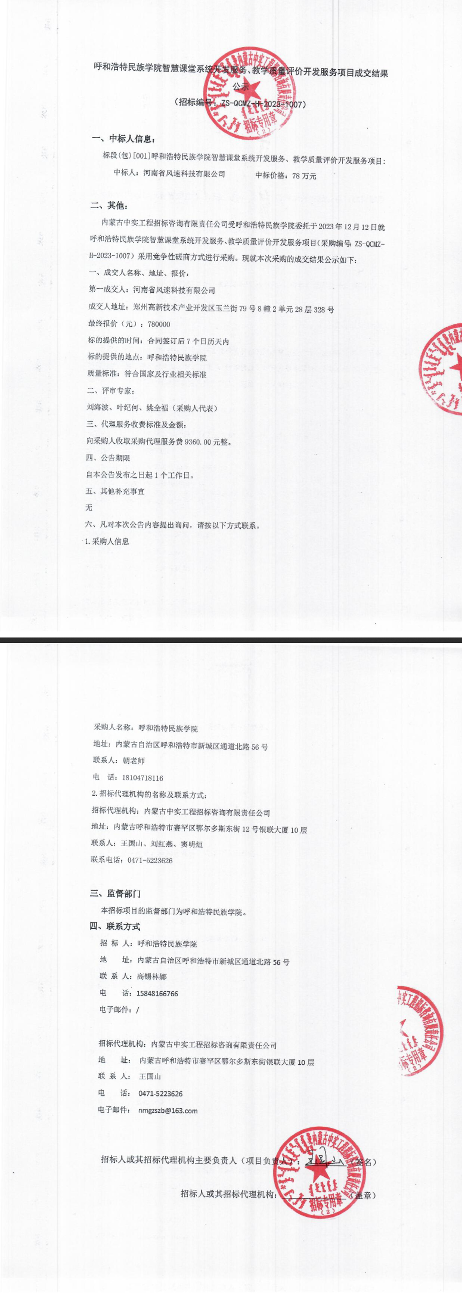 MILE米乐集团智慧课堂系统开发服务、教学质量评价开发服务项目成交结果