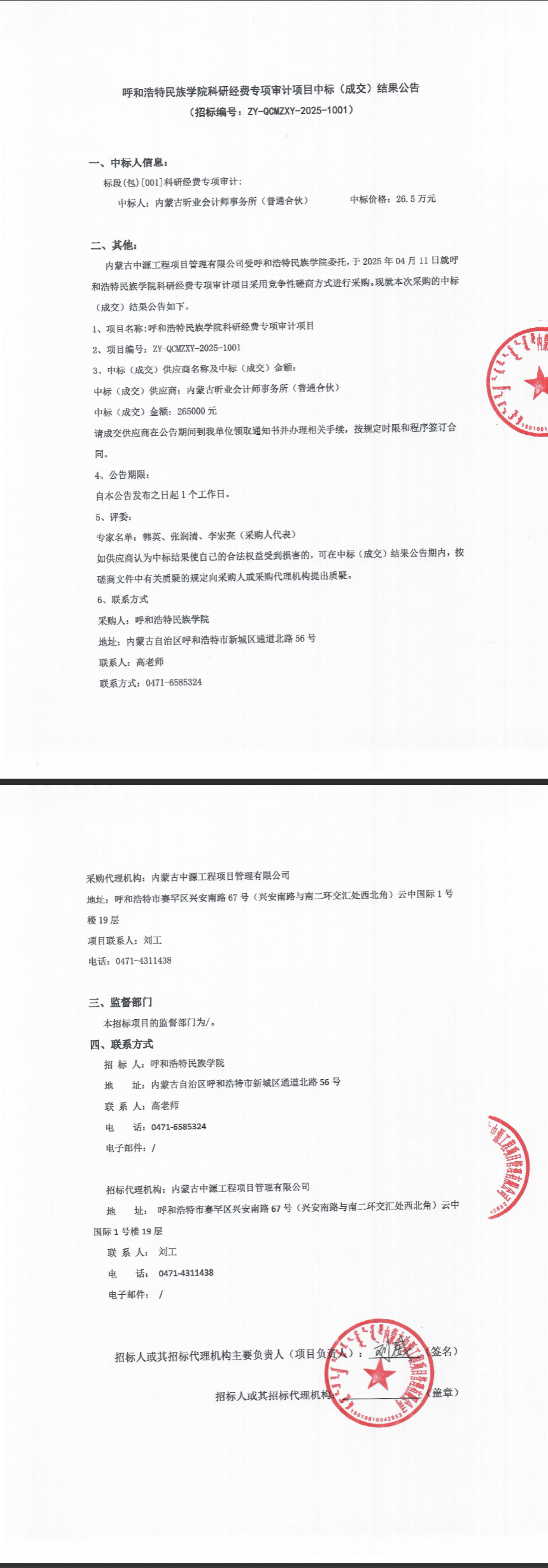 MILE米乐集团科研经费专项审计项目中标(成交)结果公告