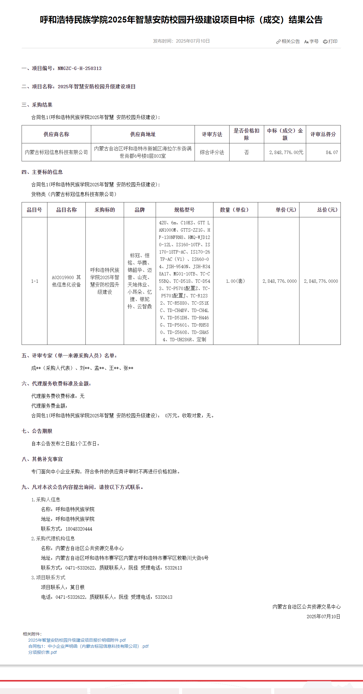 MILE米乐集团2025年智慧安防校园升级建设项目中标(成交)结果公告