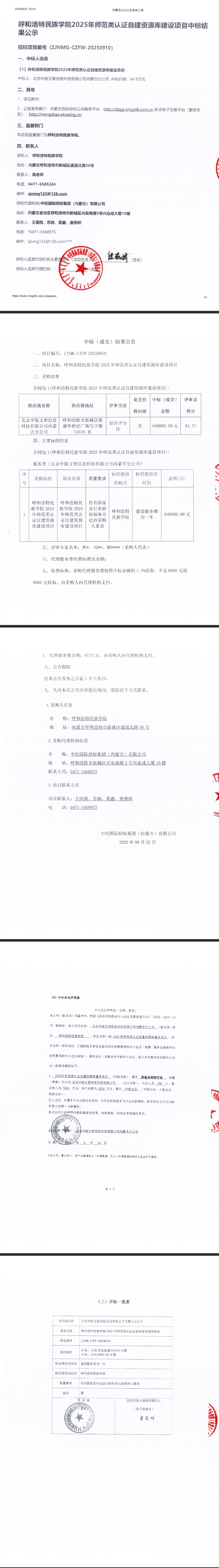 MILE米乐集团2025年师范类认证自建资源库建设项目中标结果公示