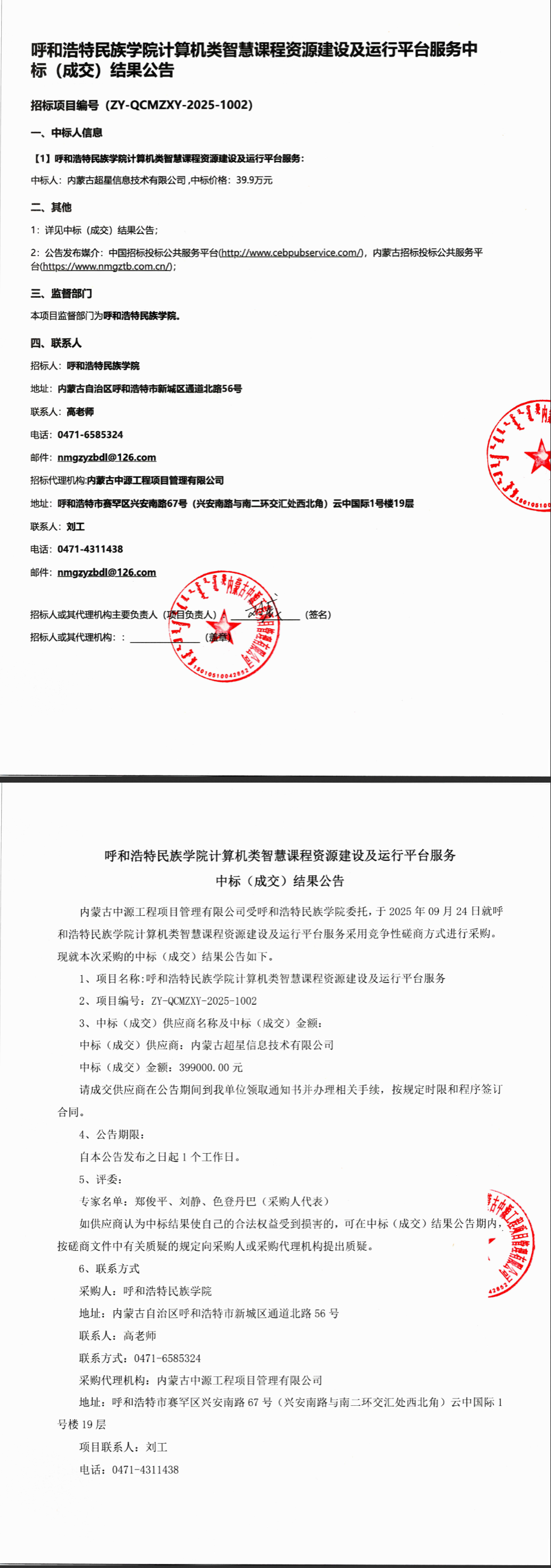 MILE米乐集团计算机类智慧课程资源建设及运行平台服务中标结果公示